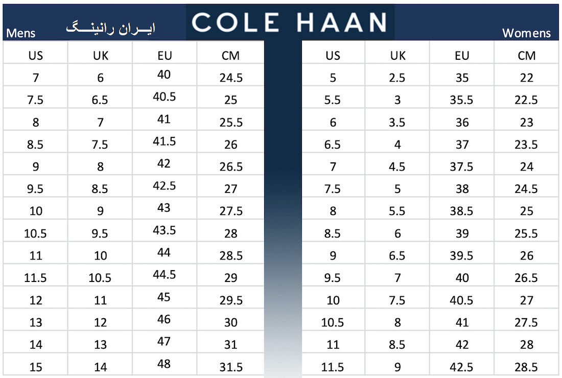 جدول سایزبندی برند کول هان